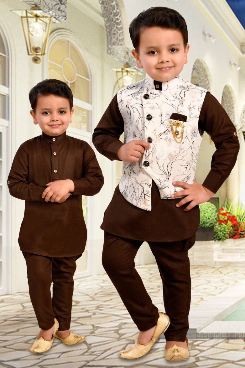 Kids Ethnic Wear Kurta Pyjama Waistcoat Set for Boys